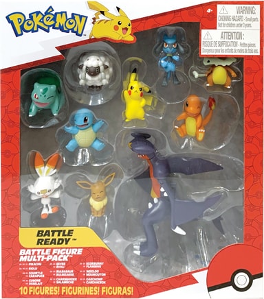 Starta din samling med Pokemon Battle Ready Action Figure 10-pack. Förpackningen innehåller 5 cm Pikachu, Squirtle, Bulbasaur, Charmander, Froakie, Yamper, Gible, Growlithe, Oddish och 11,4 cm Cinderace.Läs mer om produkten