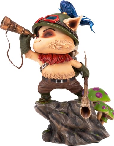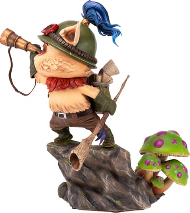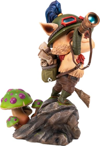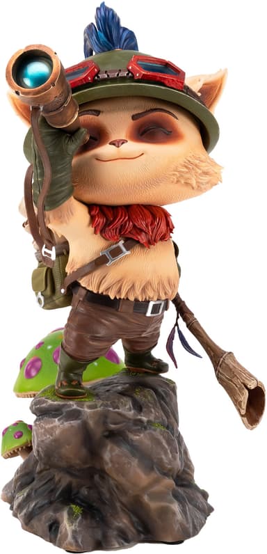 PureArts League of Legends actionfigur visar upp Teemo med sitt klassiska skinn, blåspistol, teleskop och signaturröda glasögon, stående på en klippa med livfulla giftsvampar.Läs mer om produkten