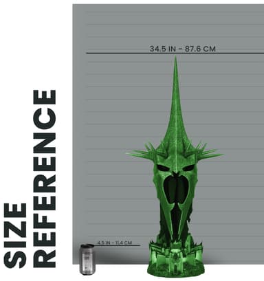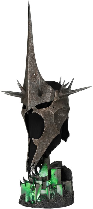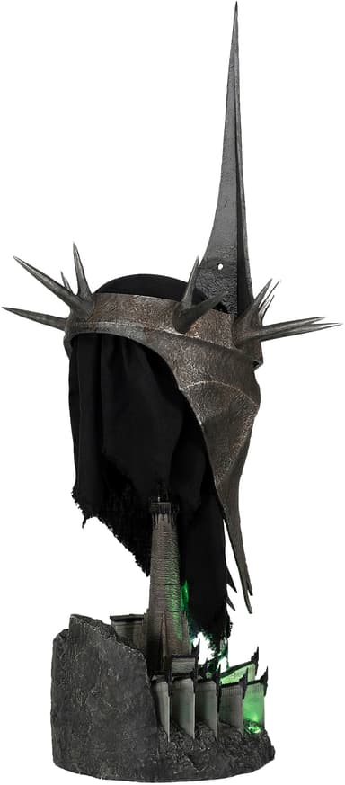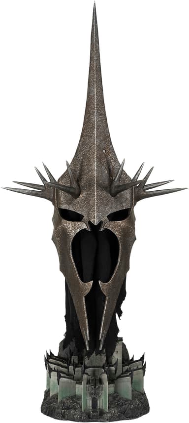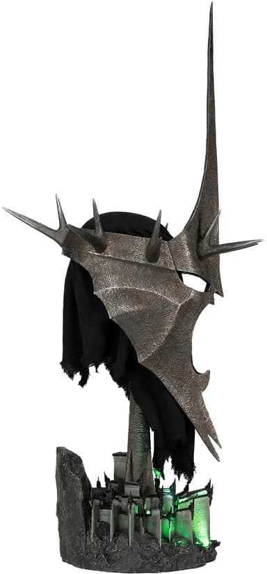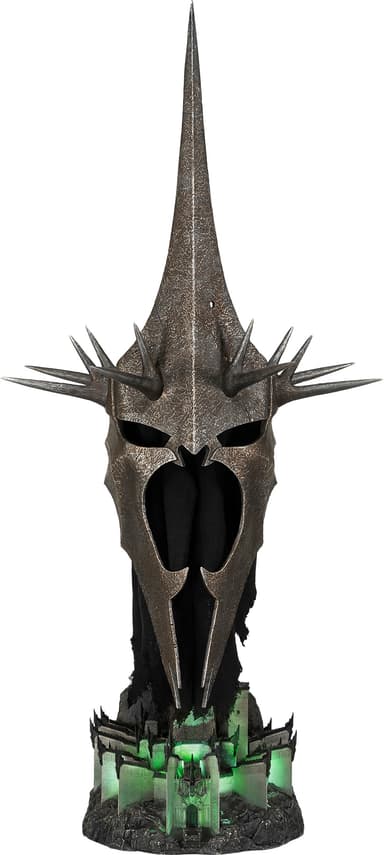 PureArts Lord of the Rings actionfigur visar två statyer av häxkungen av Angmars hjälm från Sagan om ringen. En staty visar tornet Barad-dûr med ett glödande grönt ljus, medan den andra visar Mount Doom.Läs mer om produkten