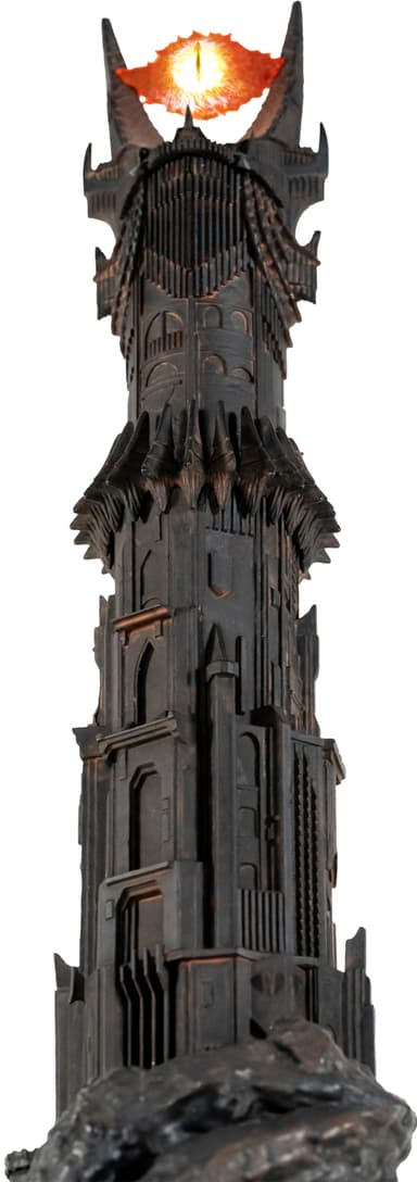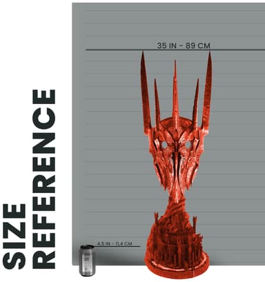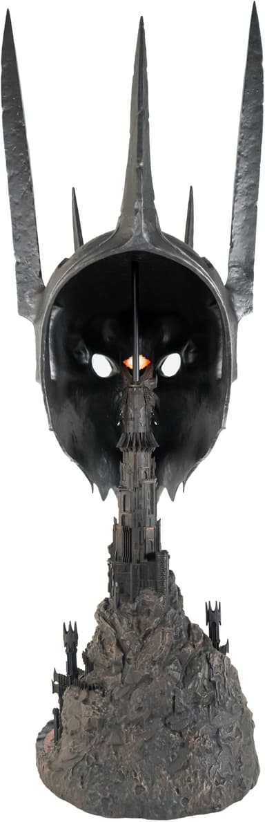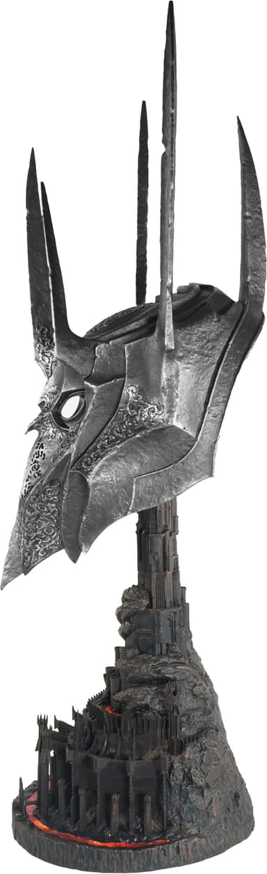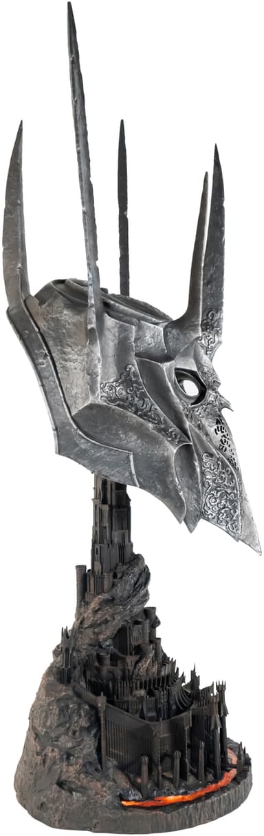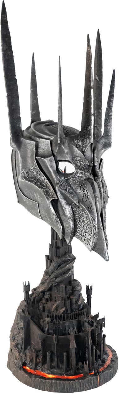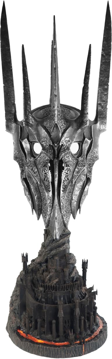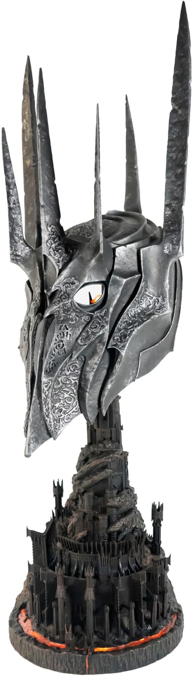 PUREARTS Sauron-actionfigur (Sagan om ringen) visar en replika av Saurons krona från Sagan om ringen. Kronan är avbildad i en hotfull, metallisk silverfärg med intrikata detaljer och en eldliknande bas som påminner om Domedagsberget.Läs mer om produkten
