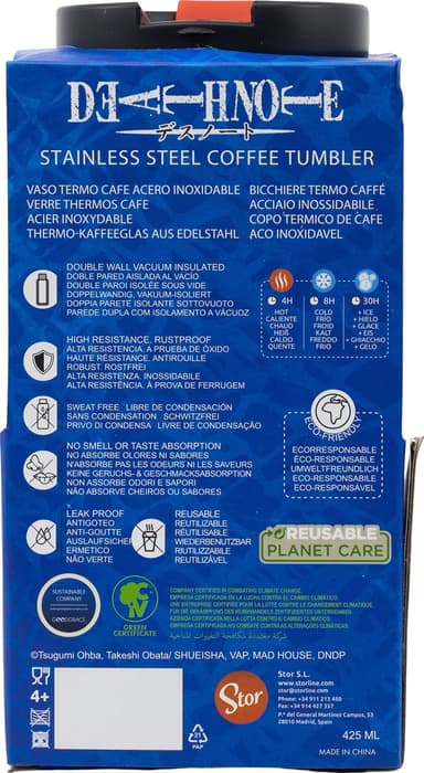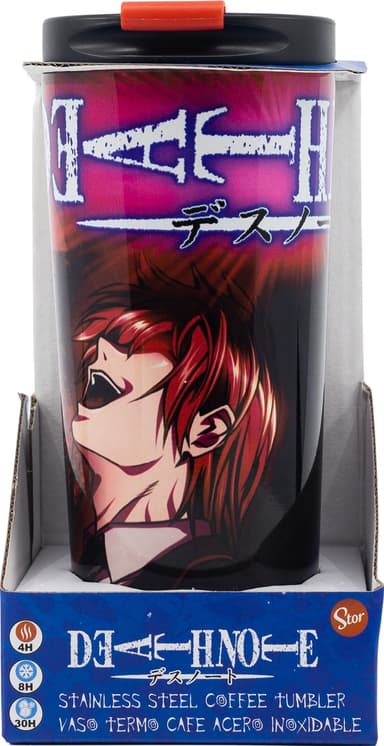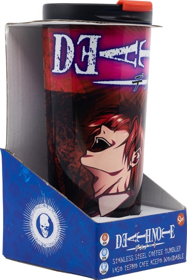 Njut av ditt kaffe och andra drycker i denna snygga Stor Death Note kaffeglas. Kapaciteten på 425 ml låter dig ta en stor drink, och trycket gör att den sticker ut. Den är gjord av rostfritt stål. Det håller dina drycker varma eller kalla länge.Läs mer om produkten