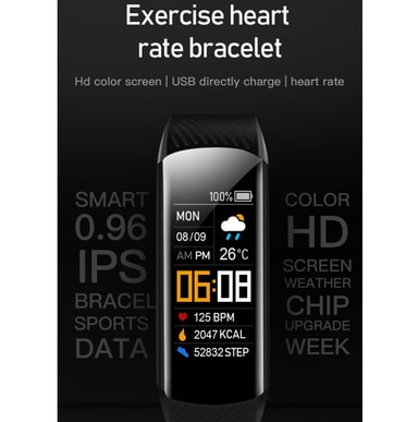 Aktivitetsarmbandet erbjuder en mängd funktioner som temperatur och väder, tid, datum, vecka, stegräknare, kaloriförbrukning, distansmätning, pulsmätare, blodtryck, blodsyre och olika träningsinställningar.Läs mer om produkten