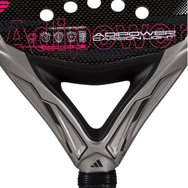 Adipower Carbon Light är en racket som kombinerar de bästa teknologierna med ett smidigare grepp, tack vare sin lätta design. Det dubbla exoskelettet, med kolförstärkningar, och Power Embossed Ridge i ramen förbättrar dess styvhet för förbättrat aggressivt spel. Dessutom ger arrangemanget av Smart Holes Curve och 3D Spin Blade Mold-strukturen optimal spin på alla skott.