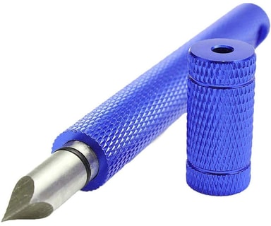 Högkvalitativt material: Groovässaren är tillverkad av flygplansaluminium, har en spets av härdat verktygsstål och ett räfflad mönster för bättre grepp.