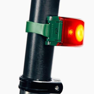 Uppladdningsbar cykellampa med hög ljusstyrka på upp till 220 lumen och en körtid på upp till 32 timmar. Lätt att fästa och lossa från styret med det elastiska silikonbandet.Läs mer om produkten