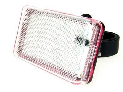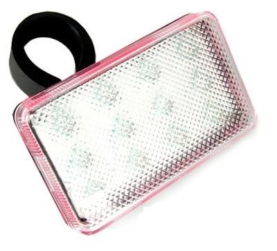Cykellampa med LED-dioder som lyser eller blinkar i rött, grönt och blått.