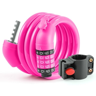 • Cykellås Lås Kabel 5-siffrig kombination monteringsfäste - Rosa