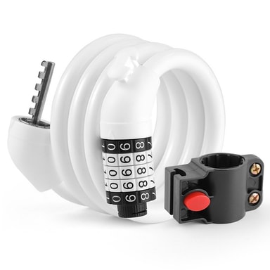 Cykellås Lås Kabel 5-siffrig kombination monteringsfäste - Vit