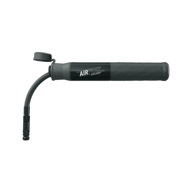 En liten pump med stor påverkan. AIRFLEX-minipumpen från SKS är inflation med användarkomfort. En slang lagrad i pumpröret, dold av dammskyddet, skruvar på ventilhuvudet med en helt lufttät anslutning av AV / SV-ventiler. Pumpen ger uppblåsning upp till 5 bar / 73 PSI. Pumphandtaget är tillverkat av en mjuk sammansättning och är lätt att greppa. Materialkombinationen av aluminium och plastkol med SKS-präglingen gör pumpen till ett måste för cyklister med en känsla av design. Det inre kompressionsröret är tillverkat av kolförstärkt polyamid. Det har större stabilitet än konventionell plast och materialet ger en tunnare väggdensitet så att AIRFLEX är en lätt följeslagare på alla cykelturer.