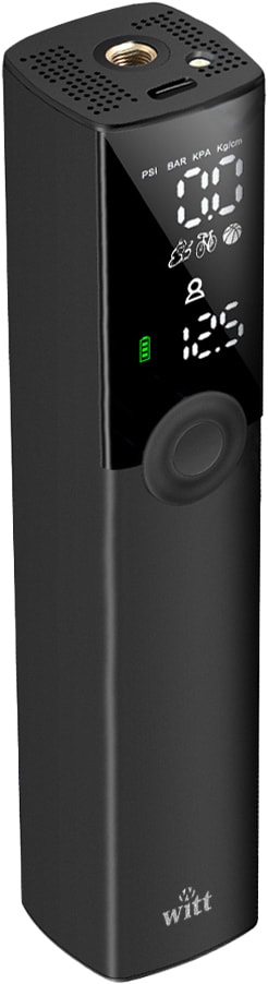 Witt Compact cykelpump MP102279 är en liten, portabel, USB-C laddningsbar pump med 4 tryckinställningar, realtidsvisning, LED-lampa och automatisk avstängning. Fungerar med olika ventiler för däck, bollar och mycket mer.Läs mer om produkten