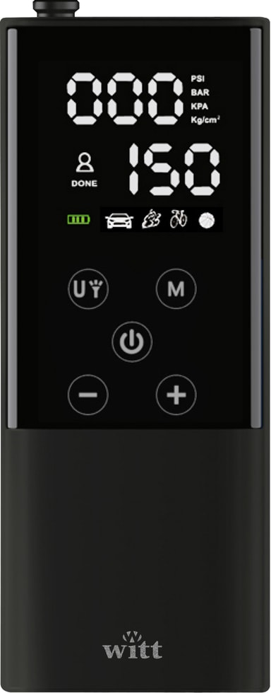 Witt Smart Touch MP102280 är en kompakt, laddningsbar cykelpump för bilar, cyklar och sparkcyklar. Utrustad med 5 tryckinställningar, LED-lampa, realtidsvisning, automatavstängning och flera munstycken för enkel användning och transport.Läs mer om produkten