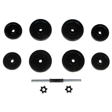 Denna ergonomiska hanteln har en totalvikt på 15 kg. Hanteln har ett halkfritt handtag så du kan träna utan att behöva oroa dig för att den halkar ur händerna. Skruvlocken har sjärnbultar som håller viktskivorna på plats på stången.Läs mer om produkten