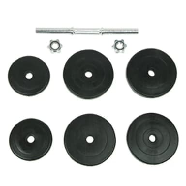 I detta hantelset ingår en hantel med en totalvikt på 15 kg. Vikterna väger mellan 1,25 och 2,5 kg, vilket gör att du kan variera vikterna och själv bestämma nivån på träningen.Läs mer om produkten