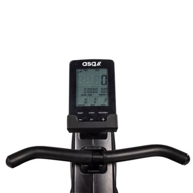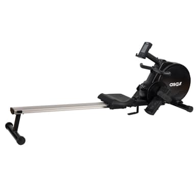 Romaskin från ASG med aluminiumskena och utvändig broms. Specifikationer: Säte: Skum och läder Motståndsnivåer: 8 Transmissionssystem: J5-bälte Svinghjul: 5 kg Adapter/batteri: Batteri Konsol: YT6907-4 Datorfunktioner: Hastighet, tid, distans, kalorier, puls, watt Uppställd storlek: 193 x 49 x 50 cm Produktvikt: 32 kg Maximal belastning: 120 kg Denna romaskin erbjuder en effektiv och skonsam träning, idealisk för att stärka hela kroppen och förbättra uthålligheten.