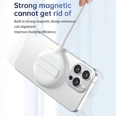 Induktiv laddning: Känslig induktiv laddning: Med ett laddningsavstånd på 2-5 mm fungerar denna laddare effektivt utan att behöva ta bort ditt telefonfodral (inom 2 mm tjocklek), särskilt kompatibel med MagSafe-fodral