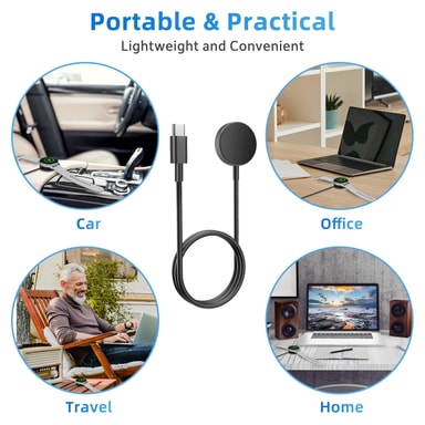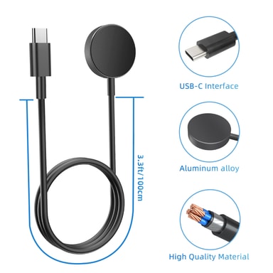 Lång och slitstark kabel: Med en längd på 1 meter erbjuder laddaren bekväm och lexibel laddning för din smartklocka. Laddningskabeln är tillverkad av högkvalitativt ABS och PET vilket ger en lång livslängd.