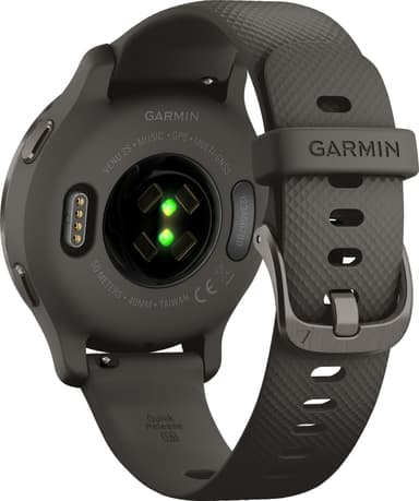 Garmin Venu 2-serien ger dig lång batteritid - faktiskt upp till hela 11 dagar. Snabbladdning säkerställer också att du snabbt kan vara på språng igen även om batteriet tar slut. Dessutom får du avancerade funktioner för att få bättre kontroll på träning och hälsa, som ska hjälpa dig att bättre förstå vad som händer i din kropp. Använd animerade träningsprogram och få tillgång till mer än 25 inbyggda inomhus- och GPS sportappar. Sedan kan du även skämma bort dig med din favoritmusik - upp till 650 låtar - utan att din telefon behövs när du lyssnar.
