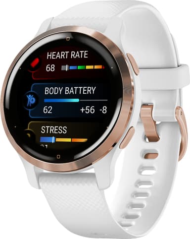 Garmin Venu 2 GPS smartwatch har en 1,3-tums AMOLED-skärm, 5ATM vattenmotstånd och ANT+-kompatibilitet. Den hjälper dig upprätthålla din aktiva livsstil .Läs mer om produkten
