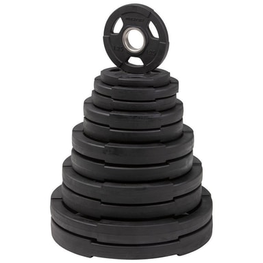 Gummiklädda vikter av hög kvalitet vilket gör att setet lämpar sig även till föreningar och gym, samt ett par snabblås. Handtagen gör det möjligt att använda viktskivorna till en mängd andra övningar utan skivstång.Läs mer om produkten