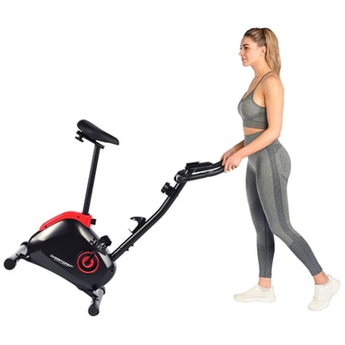 Dyk ner i en ny era av hemmaträning med motionscykeln HT 2.0. Denna moderna träningsenhet erbjuder dig en nästintill ljudlös träningsupplevelse, med perfekt jämnhet tack vare dess slitfria 5 kg magnetiska bromssystem och visktyst plattremdrift. Anpassa din träning i 8 steg för att hitta den optimala belastningen för din konditionsnivå. Håll koll på dina träningsdata som tid, hastighet, distans, kaloriförbrukning och puls på den digitala displayen. Skanningsfunktionen ger dig omfattande kontroll. Hitta din idealiska träningsposition med sadelns vertikala och horisontella justering. Separata pedalsäkerhetsremmar säkerställer en stabil fotposition under träningen. Tack vare de främre transporthjulen kan du enkelt flytta motionscykeln till valfri plats. Den 3-delade pedalarmen säkerställer en smidig drift och stödjer en maximal användarvikt på 110 kg. Håll din dryck inom räckhåll för att hålla dig hydrerad under träningen. Träna bekvämt hemma, oavsett väderförhållanden. Boost din ämnesomsättning, stärk dina benmuskler och förbättra din allmänna kondition. Perfekt för målinriktad kardiovaskulär träning och uthållighetsträning med pulskontroll. Motionscykeln HT 2.0 är din ideala partner för att nå dina träningsmål – från allmän fysisk kondition till målinriktad kardiovaskulär träning. Specifikationer: Uppsatt storlek: L:87 x B:46 x H:119 cm Bromssystem: Slitfri magnetbroms Svänghjul: 5 kg Motståndsnivåer: 8-stegs manuell justering – vertikal, horisontell och höjdjusterbar sadel Pulsmätning: Pulsgrip/handsensormätning Produktvikt: 20,3 kg Dator: Ja Datorn visar: Tid, hastighet, distans, kaloriförbrukning, hjärtfrekvens, skanning, total distans Maximal användarvikt: 110 kg.
