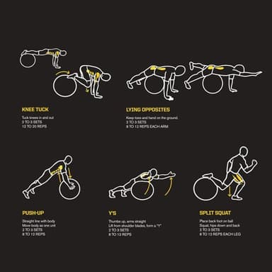 Med övningar och tydliga bilder på bollen visar SKLZ Trainerball dig musklerna som riktas mot en mer komplett och effektiv träning i hela kroppen. Den innehåller rekommenderade övningar och reps för maximal resultat.