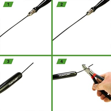 Tunturi Pro justerbart hopprep är en multifunktionell partner för alla dina träningsprogram. Du kan använda fjäderrep för konditionsträning, fitness, boxningsträning, styrketräning eller som förberedelse för någon form av träning. Lämplig för alla, oavsett om du är nybörjare eller avancerad. Stålkabeln är 2,5 millimeter tunn och skyddas av en PVC-hylsa som gör byglarna mjukare och bidrar till hållbarheten hos detta premiumfjäderrep. Det självlåsande systemet gör det möjligt att justera repet till önskad längd på några sekunder. Handtagen har ett bra halkskikt som säkerställer att du inte tappar greppet lätt. De innehåller kullager som roterar 360 grader för en snabb och jämn rotationshastighet.""
