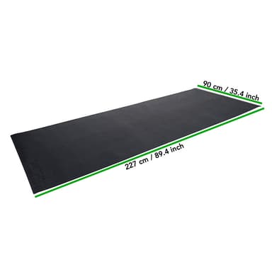 Tränar du på träningsmaskiner hemma? Tänk på ditt golv! Tunturi golvskyddsmatta skyddar ditt golv, men säkerställer också ljuddämpning. Du behöver inte längre oroa dig för ditt golv med Tunturi golvskyddsmatta! Lämplig för hemmatränare, crosstrainers, löpband och rodd. Mattan mäter 227 cm x 90 cm x 0,4 cm och är gjord av svart gummi.