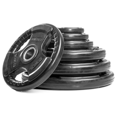 Gummerade viktskivor med svart överdrag. Smart design med tre greppmöjligheter för att underlätta klovningen samt att vikskivorna kan användas till andra övningar. 51 mm centrumhål för att passa en 50 mm skivstång optimalt.Läs mer om produkten
