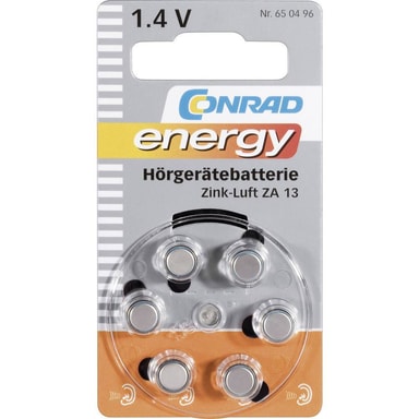 Conrad energy Knappcell ZA 13 Zink-luft 280 mAh 1.4 V 6 st6-packLäs mer om produkten