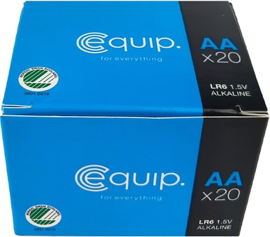 Equip LR6-AA batteripack med 20 AA alkaliska batterier, lämpliga för vardagliga enheter som fjärrkontroller, klockor och ficklampor. De är Svanenmärkta, läckagesäkra, kvicksilver- och kadmiumfria och utformade för lång hållbarhet.Läs mer om produkten