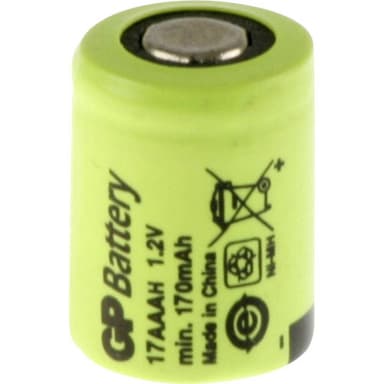 GP Batteries GP17AAAH Specialbatteri laddbart 1/3 AAA Flat-Top NiMH 1.2 V 170 mAhKapacitet 170 mAh · Flat-TopLäs mer om produkten