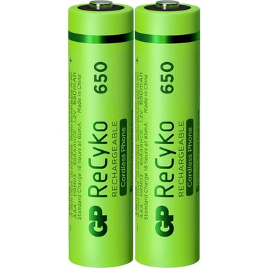 GP Batteries GPRCK65AAA554C2 Laddbart batteri AAA (R03) NiMH 650 mAh 1.2 V 2 stUtbytesbatterier för trådlösa telefoner · Minimal självurladdning · Kan användas direkt · Set om 2Läs mer om produkten