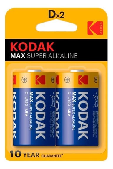 Kodak Max Alkaliska LR20/D batterier, 1,5V, 2-pack