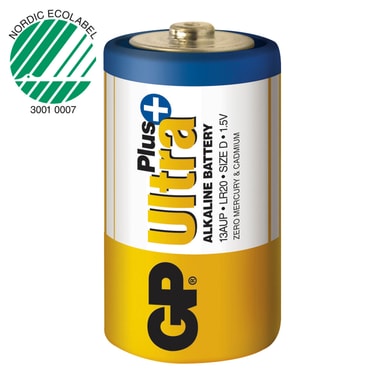 GP Ultra Plus Alkaline D-batteri, 13AUP/LR20, 2-pack