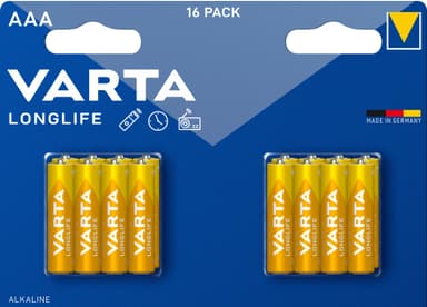 Varta Longlife AAA-batteri (16 st) ger en pålitlig strömkälla till elutrustning som fjärrkontroller, klockor, leksaker eller ficklampor.Läs mer om produkten