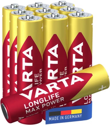 Få längre användningstid för dina enheter med Varta Longlife Power AAA-batterier 7042379. Detta 8-pack plus 2 gratis alkaliska batterier säkerställer att du alltid har en pålitlig strömkälla till hands.Läs mer om produkten