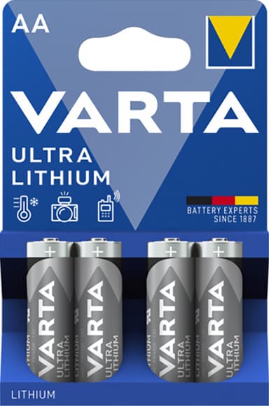 Varta Ultra Lithium AA-batterier är lämpliga för alla enheter med låg energiförbrukning, såsom fjärrkontroller, väggklockor och radio. De 4 litiumbatterierna är cylindriska och kompatibla med alla stora märken.Läs mer om produkten