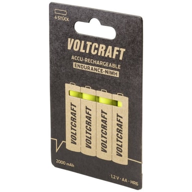 VOLTCRAFT Endurance Laddbart batteri AA (R6) NiMH 2000 mAh 1.2 V 4 stMinimal självurladdning · Levereras förladdat · Lång hållbarhet Efter 1 års lagring finns fortfarande ca 85 % av den ursprungliga kapaciteten kvar · Kan snabbladdas ·Läs mer om produkten