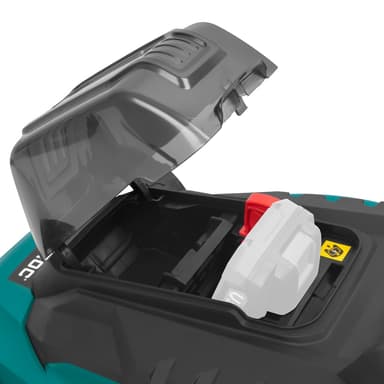 När du klippt klart kan du trimma kanterna med VONROC Grästrimmer (GT501DC). Samma batteri passar båda maskinerna, så du kan jobba vidare utan avbrott. Flera verktyg – ett batteri!
