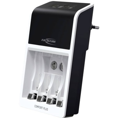 Ansmann Comfort Plus Batteriladdare NiMH AAA (R03), AA (R6), 9V block (6F22)Intelligent batteriladdare med Repair-läge · Laddar 4x NiMH-batterier AA/AAA + 1x 9V block · Svaga batterier upptäcks och återaktiveras · UrladdningsfunktionLäs mer om produkten