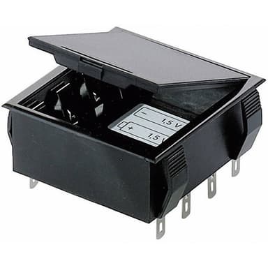 Bopla 46600000 Batterihållare 4x AA (R6), 9 V blockbatteri Lödanslutning (L x B x H) 65 x 65 x 21.5 mm· (L x B x H) 65 x 65 x 21.5 mm · Lämplig för 2x 9 V eller 4x R6 ·Läs mer om produkten