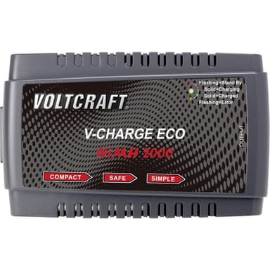 RC-batteriladdare 230 V 2 A VOLTCRAFT V-Charge Eco NiMh 2000 NiMH, NiCdKortslutningssäkring · Överladdningsskydd · LED-batteristatusindikator.Laddström 2A · För 1 - 8 NiXX-cellerLäs mer om produkten