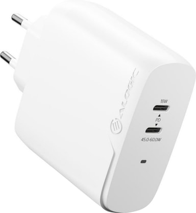 ALOGIC Rapid Power 2-ports 45+18W väggladdare + 2m USB-C kabel (vit)