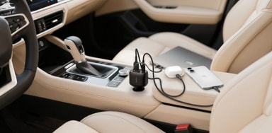 Belkins 75W billaddare erbjuder snabb och pålitlig laddning med en utdragbar USB-C-kabel, universell kompatibilitet, intelligent strömfördelning och en diskret design för en smidig och effektiv reseupplevelse utan trassel.Läs mer om produkten