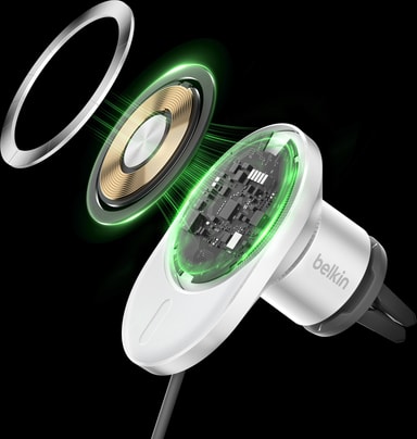 Belkin BoostCharge Pro Qi2 15W magnetisk billaddare (vit)
