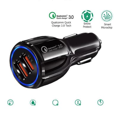 DESIGN: Den här billaddaren sticker ut med sin snabbladdningsfunktion och den dubbla anslutningen. Tack vare adaptern kommer du i framtiden att få fullt laddade enheter med blixtens hastighet!