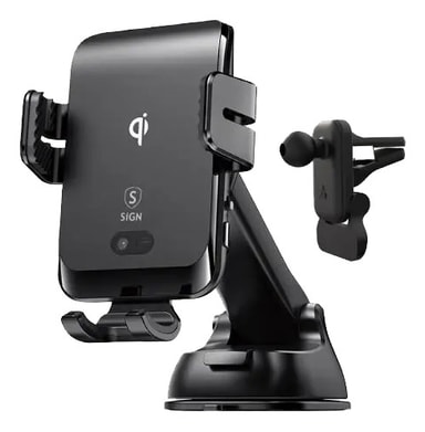 Med Sign Bilhållare för Mobilen med Trådlös Laddning 15W blir allting enkelt. Från den smidiga monteringslösningen på instrumentbrädan, till positionering av mobilen. Mobilhållaren ger dig perfekt överblick av din telefon under tiden du kör så att du enkelt kan använda den till att navigera med hjälp av mobilens GPS. För att ta ut mobilen ur hållaren trycker du lätt på knappen på undersidan och klämmorna öppnas.