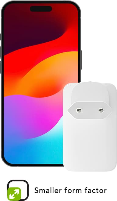 'dbramante1928 Recharge Pro laddare: ultratunn design, 20W USB-C, 18W USB-A snabbladdning med GaN-teknik, överhettningsskydd, dubbla kontakter och stöd för ledande strömprotokoll.'Läs mer om produkten