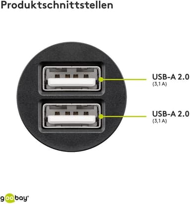 USB-bilsladdaren kan användas för att driva mobiltelefoner, kameror, hörlurar, smartklockor, surfplattor och mycket mer. Den kompakta billaddaren ansluts direkt till cigarettändaren. Goobay-adaptern möjliggör en störningsfri anslutning och laddar upp USB-enheter på nolltid. Helt enkelt. Allt. Du behöver!