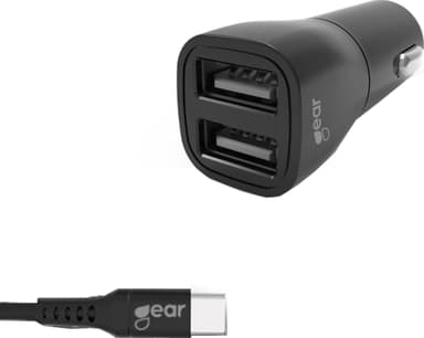 Ladda upp till 2 enheter när du kör med Gear 12 / 24V dubbel billaddare 665092, med en maximal effekt på 5V, 2 USB-A-portar och ett överspänningsskydd. Denna laddare har tunn design och en USB-A till USB-C-kabel.Läs mer om produkten